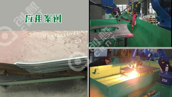 創想智控智能尋位傳感系統,解決了機器人自動劃線和切割.同時針對變形型材,提出了基于型材邊緣變形曲線的圖形坐標補償算法,實現了變形條件下型材的正確劃線和切割.實驗驗證了該機器人柔性自動化系統的可行性和高效性。