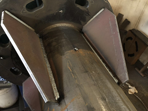 因此,為保證塔腳焊接質(zhì)量,并提高塔腳生產(chǎn)效率,在塔腳焊接中使用焊接機器人來解決上述問題。塔腳基本是由鋼板焊接而成的結(jié)構(gòu)件,工件在上下料、組對的時候難免會存在一定的誤差,導致焊縫的位置和寬窄的一致性程度不高;且由于在焊接的過程中會產(chǎn)生一定的變形,使得先焊接的焊縫產(chǎn)生變形作用在所焊接的工件上,導致后焊的焊縫偏離了原來組對時的位置。為了保證焊接的質(zhì)量,要求機器人在焊接時能夠進行自動糾偏。